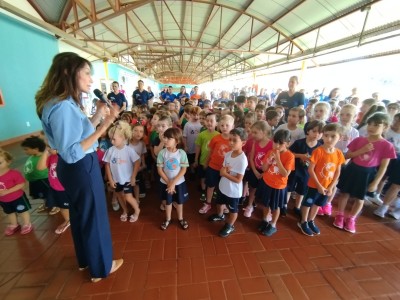 Também estiveram presentes policiais da Patrulha Rural da Polícia Militar do Paraná, fortalecendo a integração entre a comunidade escolar, o poder público e as forças de segurança.