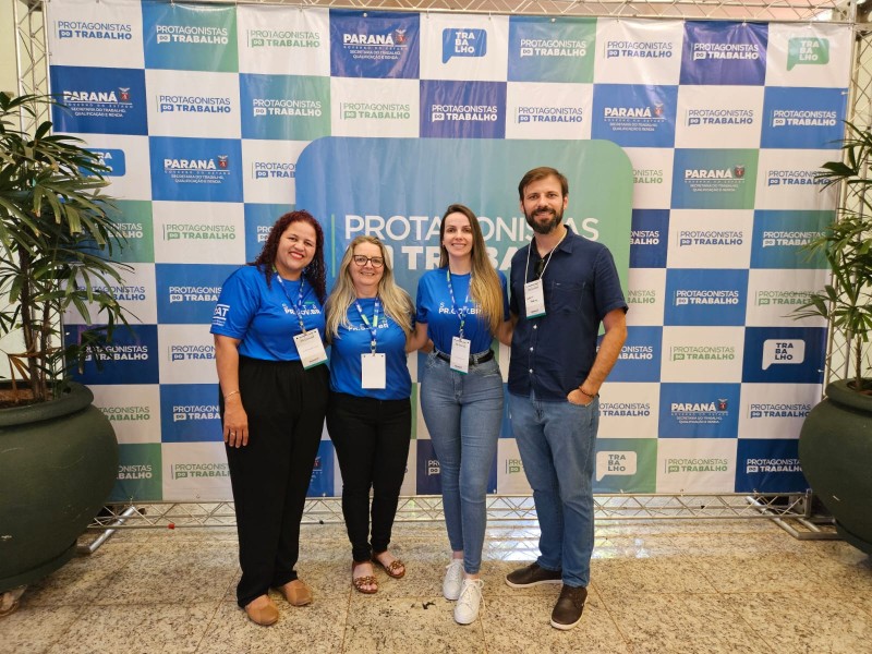 O secretário municipal de Indústria, Comércio e Turismo, Gustavo Fossa, juntamente com as servidoras da Agência do Trabalhador de Palotina - Valquíria, Nildete e Aline -, participou do Encontro Protagonistas do Trabalho, realizado na última semana em Foz do Iguaçu. O evento reuniu representantes de Agências do Trabalhador de todo o Estado.