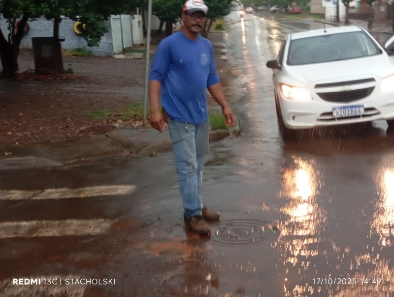 A forte chuva registrada na tarde desta sexta-feira (17) provocou alagamentos em diversos pontos da cidade de Palotina, exigindo ação imediata da Secretaria Municipal de Transporte e Obras Públicas. A precipitação intensa, que caiu em um curto espaço de tempo, sobrecarregou o sistema de drenagem urbana, resultando em transbordamento de galerias pluviais em algumas regiões.